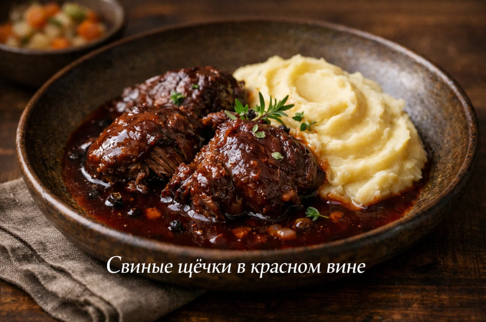 Существует немало блюд, которые способны перевернуть представление о привычных продуктах. Свиные щёчки в красном вине — именно такое блюдо. Многие проходят мимо этой части туши на рынке или в мясной лавке, не подозревая, какое кулинарное сокровище упускают. А ведь правильно приготовленные щёчки превращаются в настоящий деликатес, который по нежности и насыщенности вкуса может соперничать с самыми изысканными ресторанными блюдами.