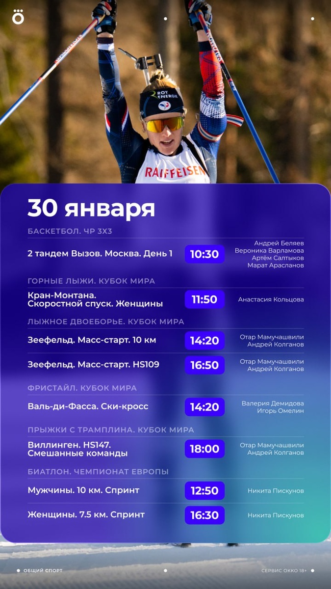 Новый выпуск «Чемпионс», жеребьевка плей-офф ЛЧ и ЛЕ, 1 и 2 Бундеслига, Лига 1, очень много баскетбола и зимних видов спорта — такая программа ждет тебя сегодня в Okko! 🙌🏻 https://okko.tv/s/4ot
