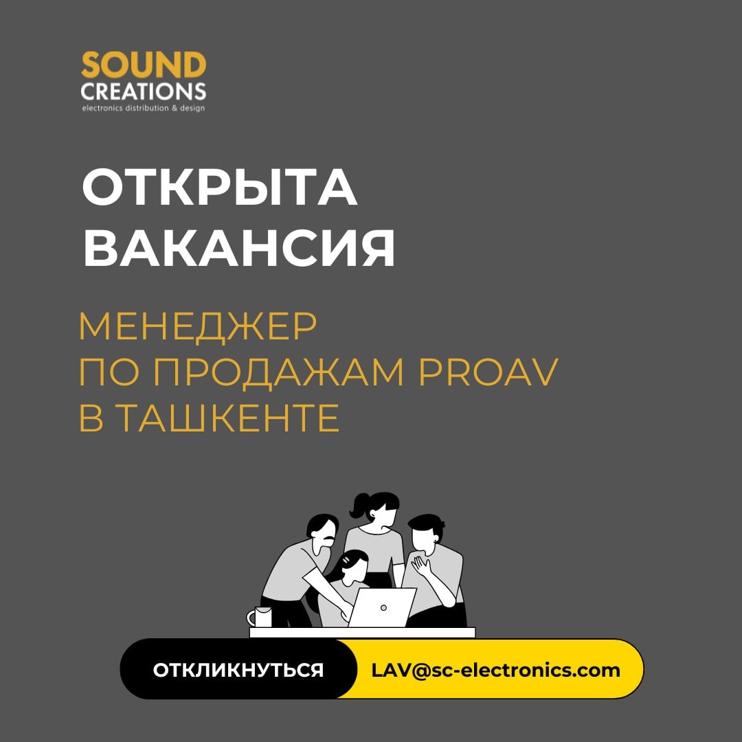 Sound Creations ищет менеджера по продажам для работы с B2B-клиентами и проектными продажами профессиональных AV-решений в Ташкенте