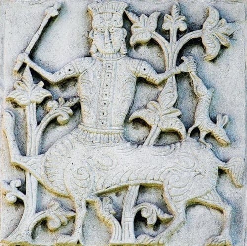 Когтистый кентавр и зайчик. Белокаменная резьба Георгиевского собора в Юрьеве-Польском, XIII в.