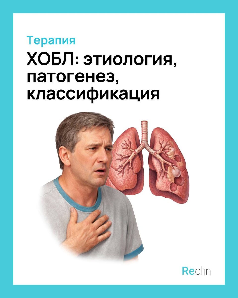 ⚡️ Чтобы уверенно поставить диагноз ХОБЛ и выбрать правильную тактику, важно понимать патогенез заболевания — что и почему происходит в лёгких. 📕 В новом гайде разбираем самые важные теоретические моменты ХОБЛ. Внутри вы найдёте: - наглядную таблицу вариантов заболевания по этиологии - механизм развития болезни — просто и с понятными схемами - основные фенотипы и их особенности 🏥 А всё, что нужно для ведения пациентов с ХОБЛ в реальной практике — диагностика, лечение и профилактика — вы найдёте в наших кратких клинических рекомендациях: https://clck.ru/3RTeom 🎤 Reclin в MAX