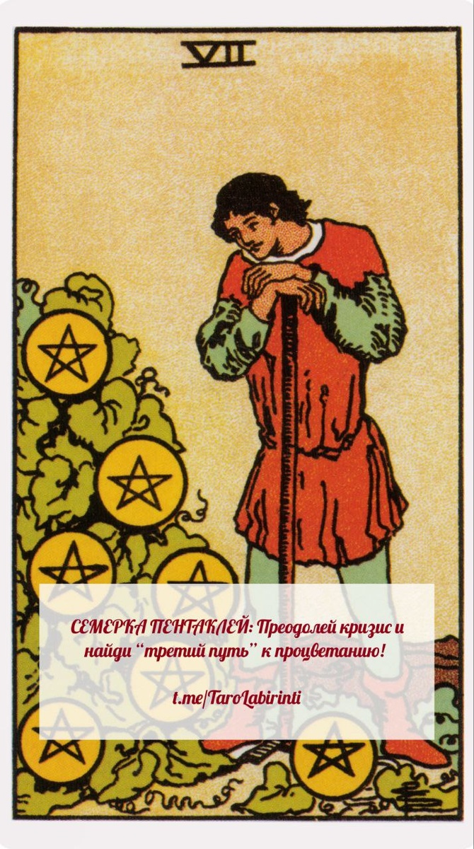 ✨ Привет, мои амбициозные тарологи!💕 📌Семерка Пентаклей часто трактуется как ожидание плодов и “сад, который растет”. Но не все так просто! В 21 веке эта карта – про осознанные инвестиции, преодоление внешнего кризиса и поиск нестандартных решений! Ты не просто ждешь, а активно ищешь выход из сложной ситуации! 🃏 Современное значение 7 Пентаклей: 🟡Осознанные инвестиции: Вкладывай ресурсы в то, что действительно важно и перспективно, несмотря на трудности. 🟡Анализ и оценка результатов: Не бойся пересматривать свои планы и стратегии, чтобы адаптироваться к меняющимся обстоятельствам. 🟡Терпение и упорство: Достижение цели требует времени, усилий и готовности бороться за свое место под солнцем. 🟡Умение видеть возможности: Не упускай шансы, которые могут принести прибыль, даже в кризисной ситуации. 🟡Гибкость и адаптивность: Будь готов меняться вместе с обстоятельствами и искать новые пути к успеху. 7ка в Таро: Время испытаний! ❗️Важно помнить, что семерки в Таро часто указ