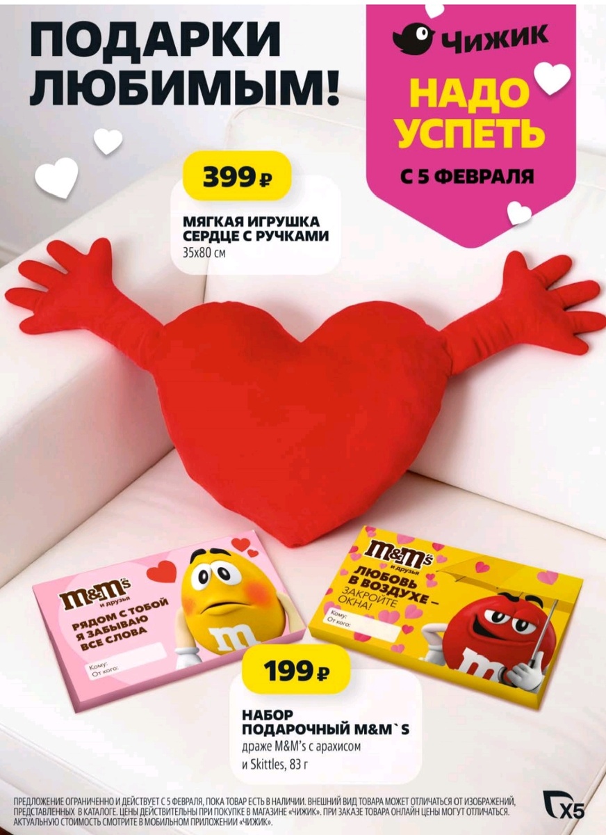 Скоро праздник День влюблённых, не скажу что это наш праздник, но товары завозят во многие магазины. И Чижик в том числе.