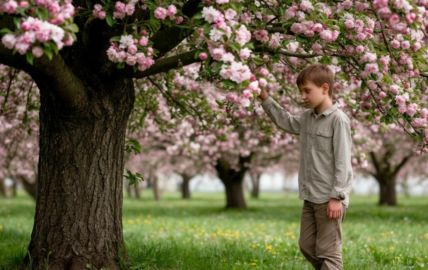 Но этой весной яблоня вдруг зацвела, буйно, яростно, покрывшись бело-розовой пеной цветов, словно невеста. Славик стоял. Его ножки в сандалиях чуть подрагивали, но держали. Он отпустил ствол дерева, сделал шаг, другой. Пошатнулся, раскинул руки, ловя равновесие, как птенец, пробующий крыло.