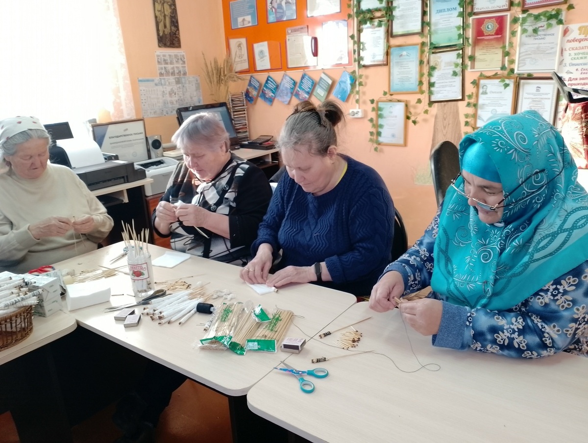 В книжном царстве села Камеево с самого начала нового года жизнь продолжает кипеть. Работники дома культуры и библиотеки, большой и дружный коллектив серебряных волонтёров, женщины клуба «Кудесница» занимаются привычными делами. Но недавно решили помочь солдатам на СВО по-особенному – освоили новый проект «Спички длительного горения». Куратор волонтёров - библиотекарь Елена Шамиданова рассказала своим мастерицам о том, как и зачем бойцы используют такие спички на передовой и почему самодельный розжиг гораздо эффективнее обычных спичек. Основная задача таких спичек — загореться, даже если они намокли, или дует сильный ветер, гореть как можно дольше, по возможности заменить костёр, чтобы согреть пространство вокруг себя или подогреть еду, осветить помещение, палатку или окоп.