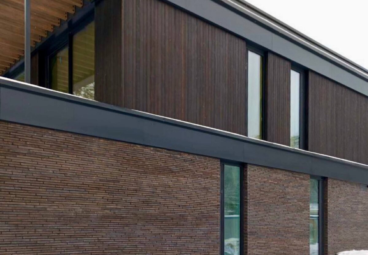 Фасадная доска сожжена в открытом пламени огня и очищена от избытков золы вручную