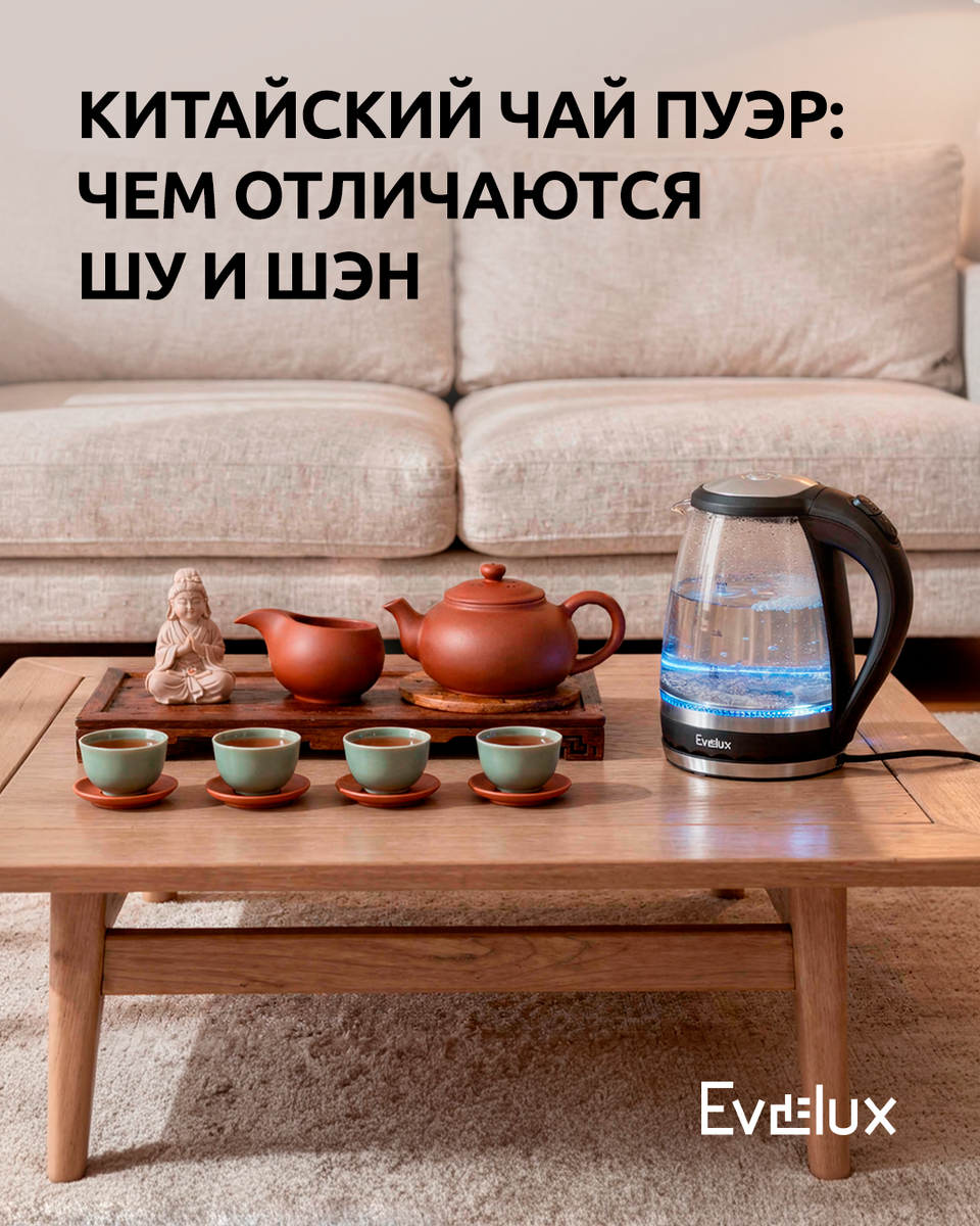 Вы когда-нибудь пробовали пуэр? Этот знаменитый китайский чай ценят за глубину вкуса и особый характер, а различают его по двум основным видам: Шу и Шэн. 🟢 Шу пуэр проходит ускоренную ферментацию, благодаря чему у него мягкий, плотный вкус. В нём часто чувствуются древесные, ореховые и землистые ноты. 🟢 Шэн пуэр не ферментируют ускоренным способом. В молодом виде он более яркий, травянистый и может быть слегка терпким. Со временем вкус становится глубже, мягче и сложнее. Чтобы пуэр раскрылся правильно, важно использовать воду около 95°C. Вскипятите воду в стеклянном чайнике Evelux EWK 0904 G и дайте ей остыть 3–5 минут до нужной температуры. Узнать больше о данной модели чайника вы можете по ссылке: https://clck.ru/3RXDYu
