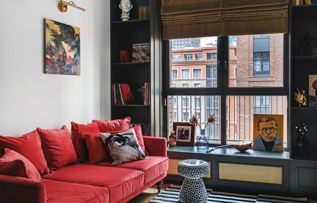В этой квартире стояла важная задача: уместить при переезде все вещи из просторной трешки в двушку Как переместить жизнь из просторной трешки в компактную двушку? Узнайте в нашем новом румтуре! Герой румтура: хозяйка Надя Буяльская покажет свою квартиру, которую обустроила вместе с дизайнером Аллой Красавиной. Кратко о квартире: квартира находится в московском ЖК «Зиларт». На момент приобретения квартира представляла собой помещение со свободной планировкой, без каких-либо внутренних перегородок. Стены возводились с нуля, в результате чего были сформированы две комнаты: кухня-гостиная и спальня. Также обустроили просторную гардеробную и ванную комнату. Обратите внимание на интерьер, выдержанный в современном стиле с легкими французскими акцентами. Светлые стены и элегантная темная мебель создают гармоничный контраст, который дополнен яркими деталями декора. Кухня отличается нестандартным расположением вдоль стены, что позволило оптимально использовать каждый сантиметр пространства. Хол