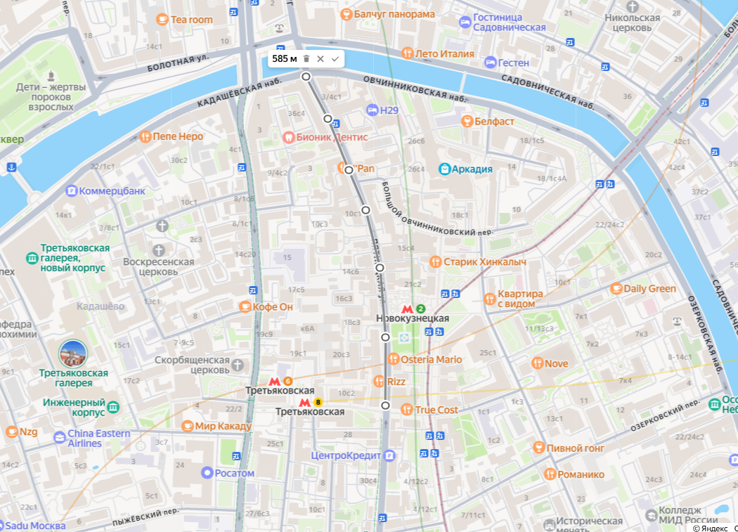 Контекст, в качестве анализа среды: для начала улочка лет так 35 глубоко туристическая. Причина? Ну… Кремль в 761 метрах, все же, а в 601 метре главная музейная жила страны — Третьяковская галерея. Как говорится: посмотрите налево — старейшая церковь этой части города, она же и крупнейшая, построенная в 1612 году (редчайшее, надо сказать, явление для центра столицы) — Климентовская. Посмотрите направо — череда исторических особняков, увенчанная заводиком господина Смирнова, водочного короля царской России. Ничего так место, надо сказать. Любопытное.