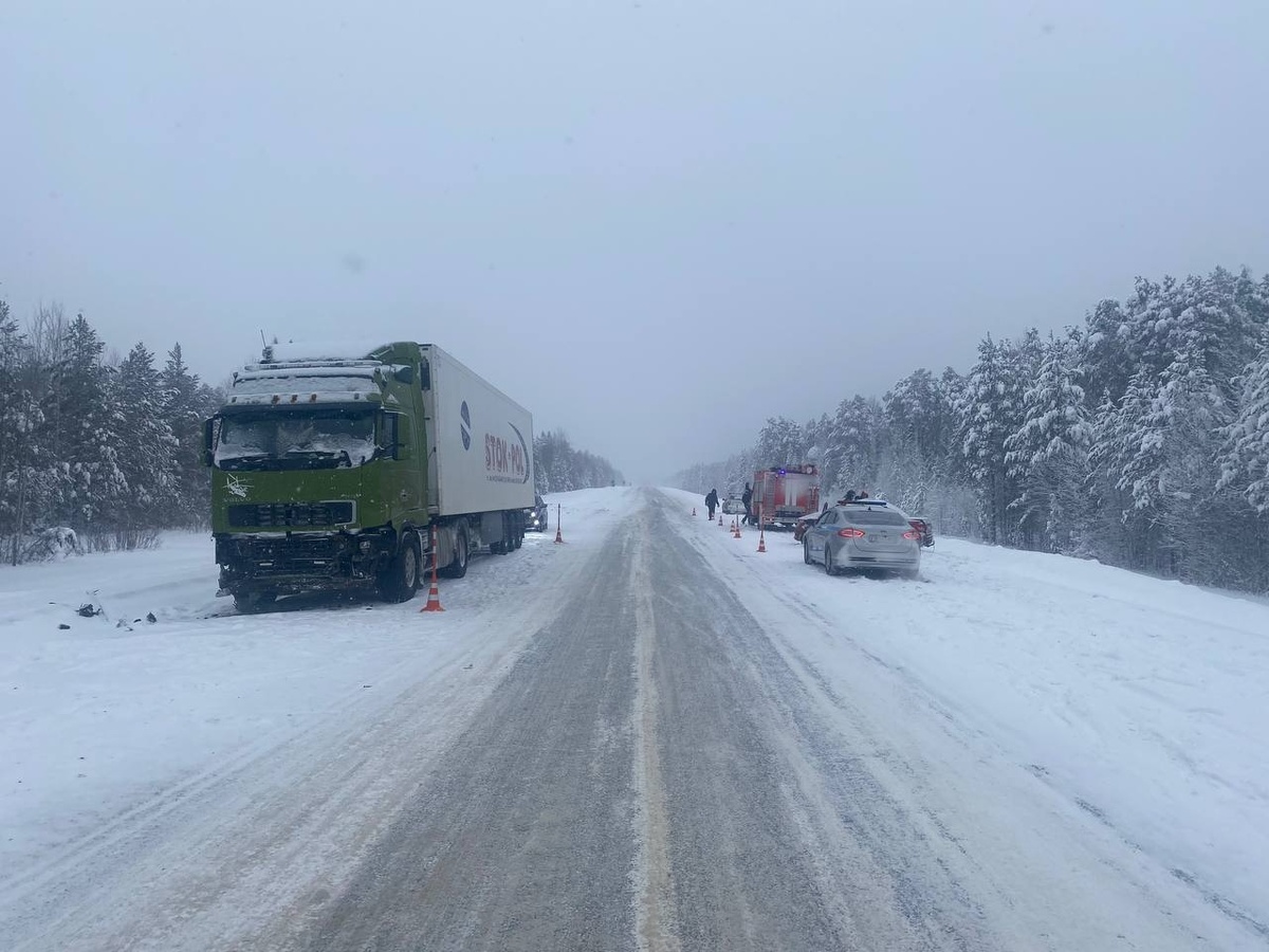 Из-за столкновения фур полностью перекрыто движение на трассе из Ханты-Мансийске