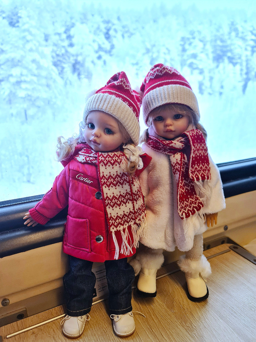 Привет, нашим верным кукловодам, творцам и соратникам по страсти! Вы готовы к порции новогоднего кукольного детектива? Мы только что вернулись из путешествия, от которого у наших манекенов до сих пор мурашки . Итак, начнём. Садитесь поудобнее. Этот год мы начали с поездки. Второго января Маша с Марьяшей решили сбежать. Они прыгнули в поезд и помчались куда глаза глядят. А глядели их глаза – за снежные леса и ледяные моря, в те места, где обитает сам Мороз (нет, не Иванович и даже не добрый дедушка, что с детишками у ёлки играет), а самый настоящий, лютый мороз, который до -30 градусов "холодит", рисует на окнах причудливые узоры и расцвечивает небо зелёно-желтыми фонариками северного сияния. Нас там уже ждали — с пирогами, блинами и почти что хлебом-солью (каравай, видимо, затерялся в снежной буре, но мы не в обиде). Но долго сидеть за столом не пришлось! Случайно (а как же иначе в наших историях?) мы узнали о встрече выпускников педколледжа. 20 лет не виделись! Страшно было взглянуть