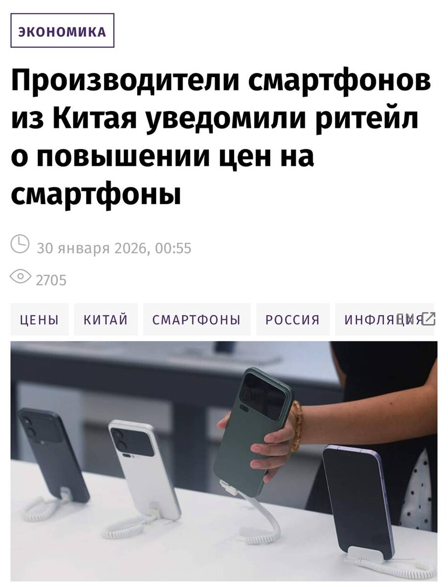 %. Всё из-за дефицита чипов памяти на фоне глобального бума ИИ. Все новые партии, поступающие в РФ, закупаются по более высокой цене, и этот процесс уже необратим. Самое неприятное: цены ПРОДОЛЖАТ лететь вверх в течение всего года из-за повышения НДС, внедрения новых систем маркировки, технологических сборов и других факторов. Срочно закупаемся. CtrlAltDelights- подписаться