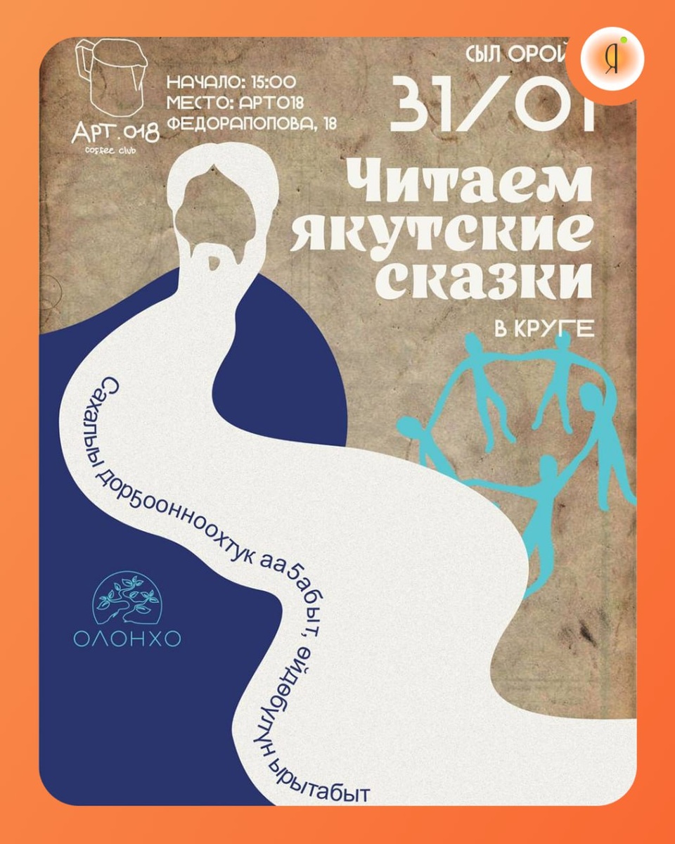 #ВГороде Тёплая камерная встреча в уютной кофейне, где мы соберемся в круге, чтобы читать и слушать якутские сказки, заранее выбранные, на якутском и русском языках. После чтения мягко обсуждаем смыслы, символы и путь героев. Формат • Чтение якутских сказок • Звучание якутского и русского языков • Разговор об образах, символах • Свободное общение за чаем и кофе 31 января | 15:00 apt018, Ф.Попова, 18 +79142974491 Online Якутия | Ждем вас в МАХ