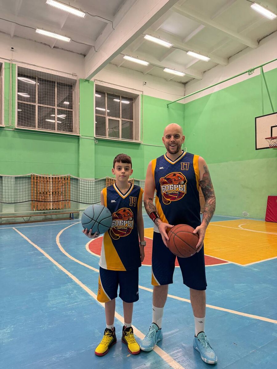 Вчера младший посетил мою баскетбольную тренировку. Как видите, у него есть даже правильная командная форма.