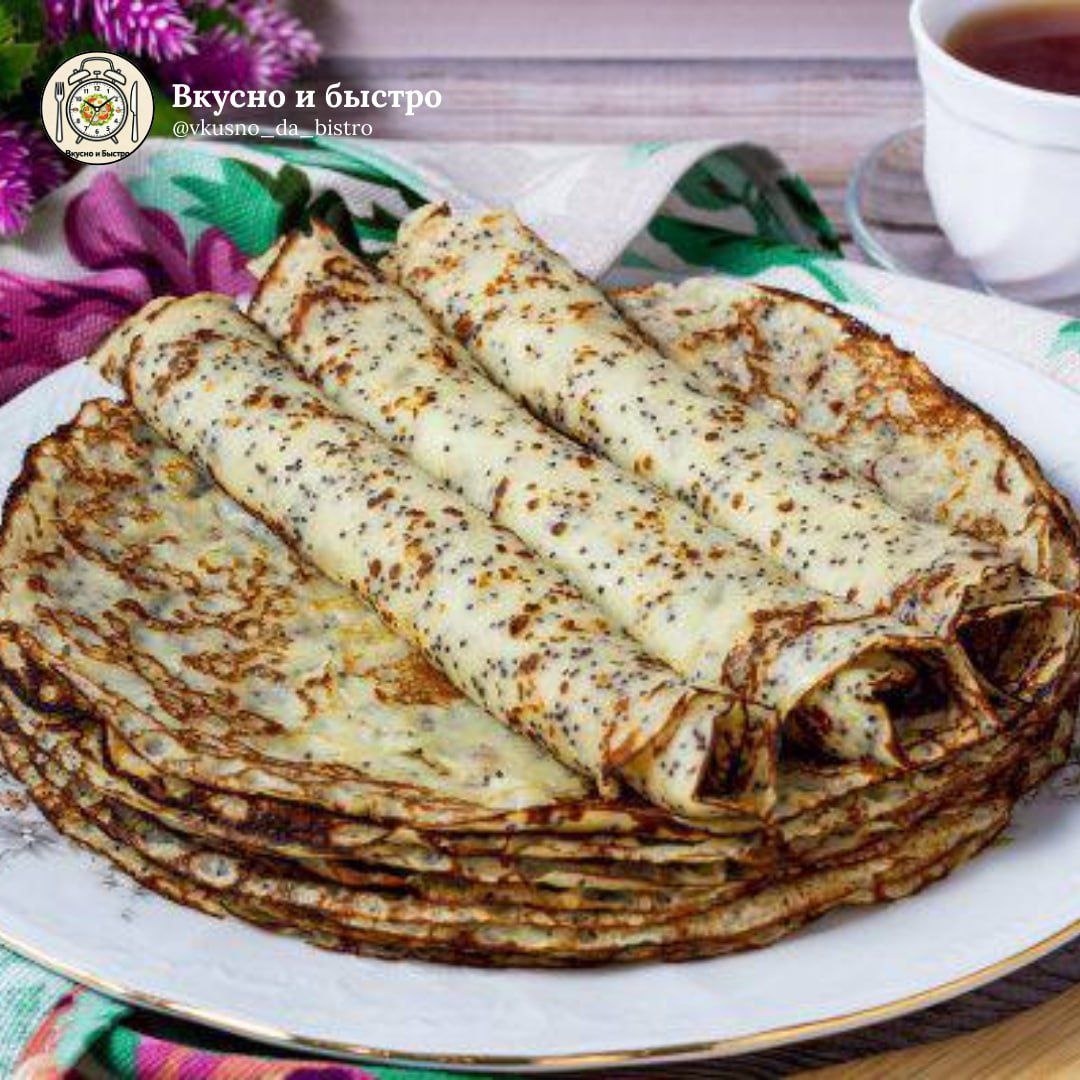 #завтрак #десерт #20мин 🕒Время приготовления: ~20 минут Порции: 4–6 шт. Сложность: легко 🧾 Ингредиенты: 🟠Яйцо — 2 шт. 🟠Молоко — 200 мл 🟠Мука — 30 г 🟠Кукурузный крахмал — 25 г 🟠Мак — 5 г 🟠Сахар — 2 ст. л. 🟠Масло — 1 г для смазывания сковороды 🍴Приготовление: 1. В миске взбейте яйца с молоком до однородности. 2. Добавьте муку, тщательно перемешайте. Затем всыпьте крахмал, мак и сахар, перемешайте до однородного теста. 3. Разогрейте сковороду и слегка смажьте маслом. 4. Жарьте блины до золотистого цвета с обеих сторон. Вкусно и Быстро | Мы в Мах 📲