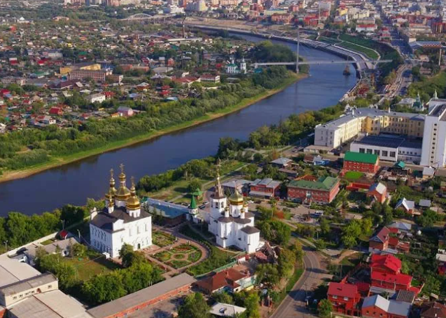 Тюмень — не просто административный центр Тюменской области и Тюменского района. Это первый русский город в Сибири, заложенный в 1586 году, важный промышленный, научный и культурный узел Западной Сибири. Сегодня это четвёртый по населению город Сибири и восемнадцатый в России. ****************************************** Расположение: юг Западной Сибири, оба берега реки Туры (левый приток Тобола). Климат: континентальный, с резкими перепадами температур: