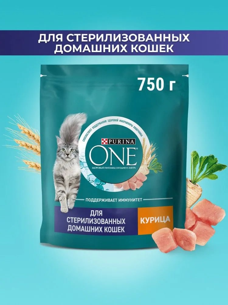 Сухой корм для стерилизованных домашних кошек с курицей PURINA ONE® , 750 г