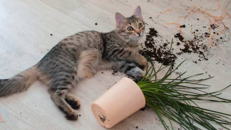 Владелица держала на подоконнике пять горшков. Кот любил там лежать. Начал сбрасывать горшки один за другим. За неделю все упали. Подоконник опустел. Кот лёг на всю длину. Растянулся. Доволен. Он не вредничал. Просто освобождал своё пространство от ненужных объектов.