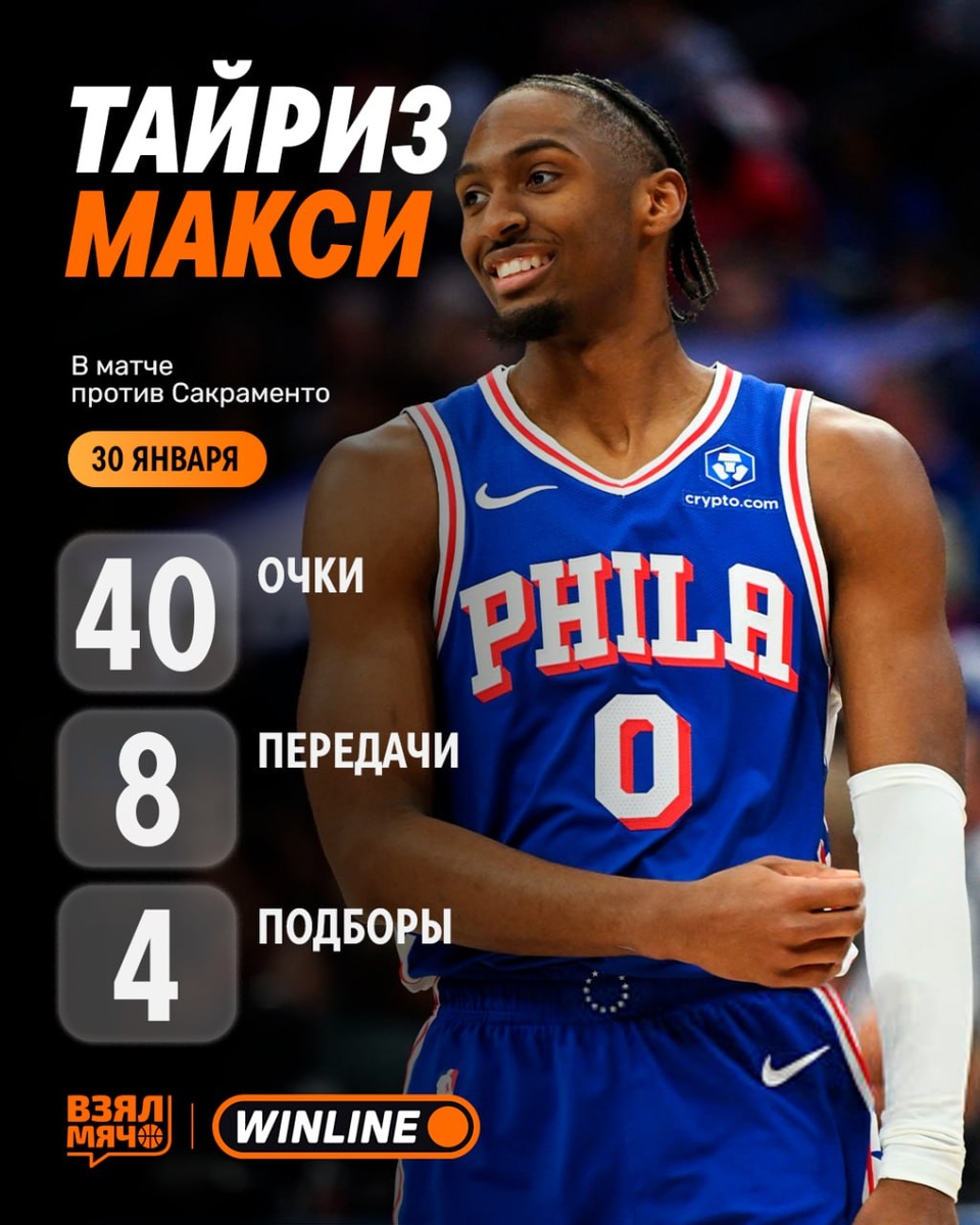 »? Тайриз Макси и Джоэл Эмбиид стали ключевыми фигурами в тяжёлой победе над «Сакраменто». Оба выдали мощный перфоманс и затащили команду в решающие моменты. У защитника сегодня 40 очков, 4 подбора, 8 передач и 1 перехват за 41 минуту, а у звёздного центрового 37 очков, 5 подборов, 8 передач, 1 блок-шот и 1 перехват за 36 минут. Кто стал главным героем матча? Выбор за вами👇 🏀 ПОДПИШИСЬ — ЗДЕСЬ ЖИВЁТ БАСКЕТБОЛ!