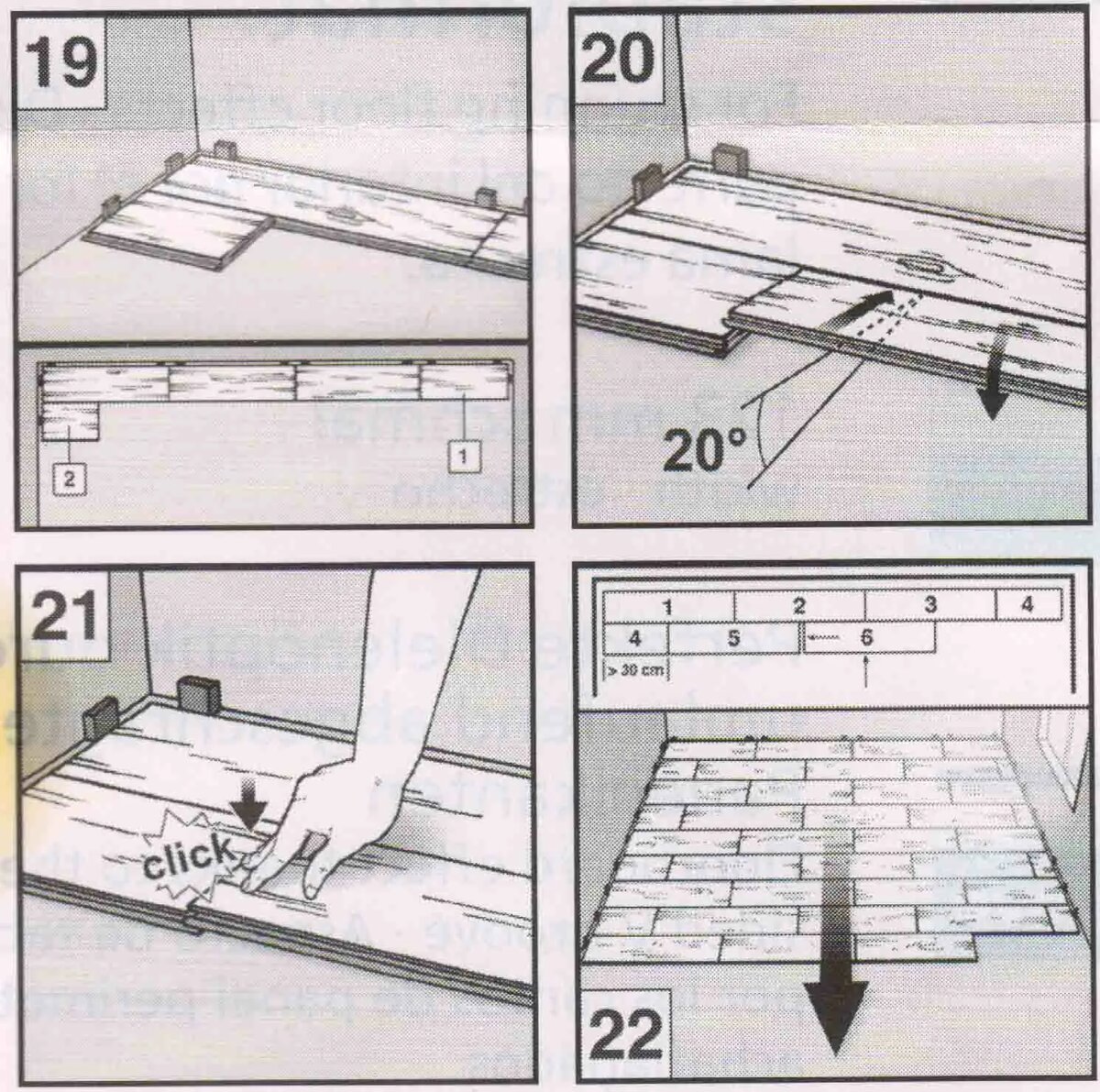 - Соединяйте ламели замковой системой. В зависимости от типа замка (лок или клик) способ соединения может различаться. Обычно шип одной доски вставляют под небольшим углом в паз другой, затем опускают и защелкивают замок.