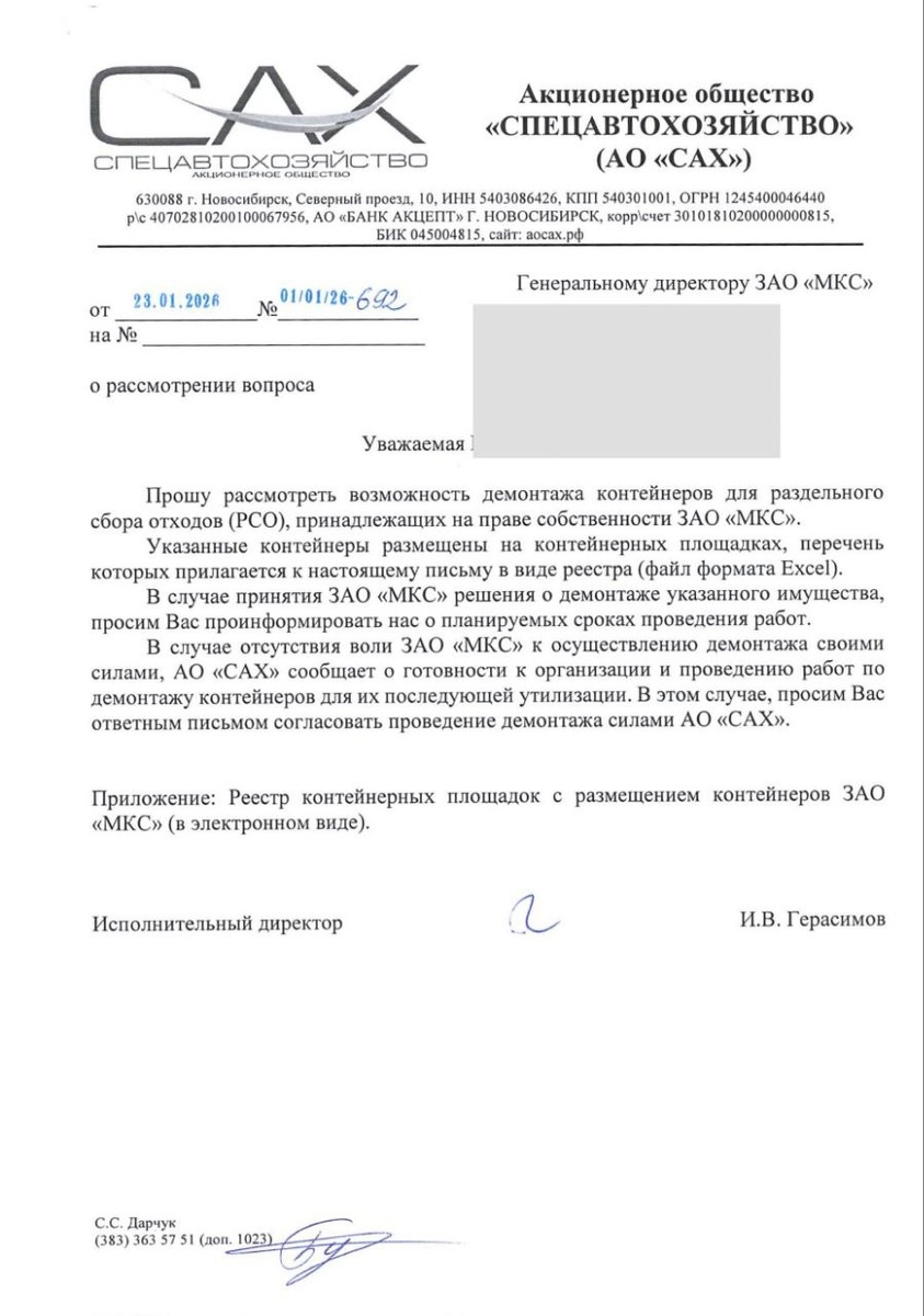 18+ НАСТОЯЩИЙ МАТЕРИАЛ (ИНФОРМАЦИЯ) ПРОИЗВЕДЁН, РАСПРОСТРАНЕН И (ИЛИ) НАПРАВЛЕН ИНОСТРАННЫМ АГЕНТОМ КАВЕРЗИНОЙ СВЕТЛАНОЙ ВИКТОРОВНОЙ ЛИБО КАСАЕТСЯ ДЕЯТЕЛЬНОСТИ ИНОСТРАННОГО АГЕНТА КАВЕРЗИНОЙ СВЕТЛАНЫ ВИКТОРОВНЫ* * номер в списке Минюста 777 Вот, например, мусорный регоператор САХ выдал предписание о демонтаже контейнеров для РСО, а не то регоператор сам эти контейнеры демонтирует и уничтожит В Советском районе исчезнут контейнеры для РСО по адресам: Весенний проезд, 4а Героев труда, 23 Морской проспект, 1 (за кулинарией) Морской проспект, 16 Правды, 9 Терешковой, 44 Появятся ли на их месте новые - неизвестно