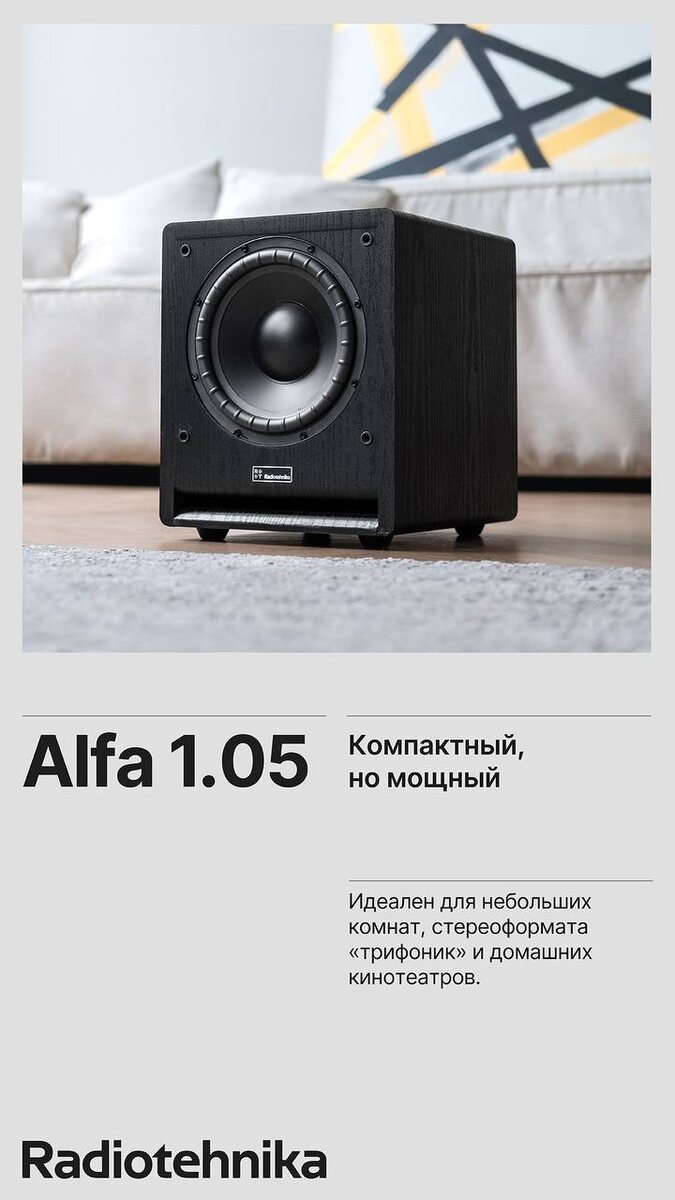 Активный сабвуфер Radiotehnika Alfa 1.05 предлагает качественный бас за разумные деньги