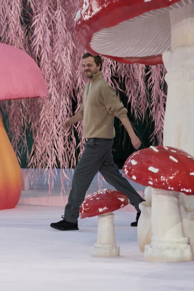 Ключевым символом коллекции стали **грибы** (мухоморы и поганки), украсившие всё — от каблуков до вышивки на костюмах.