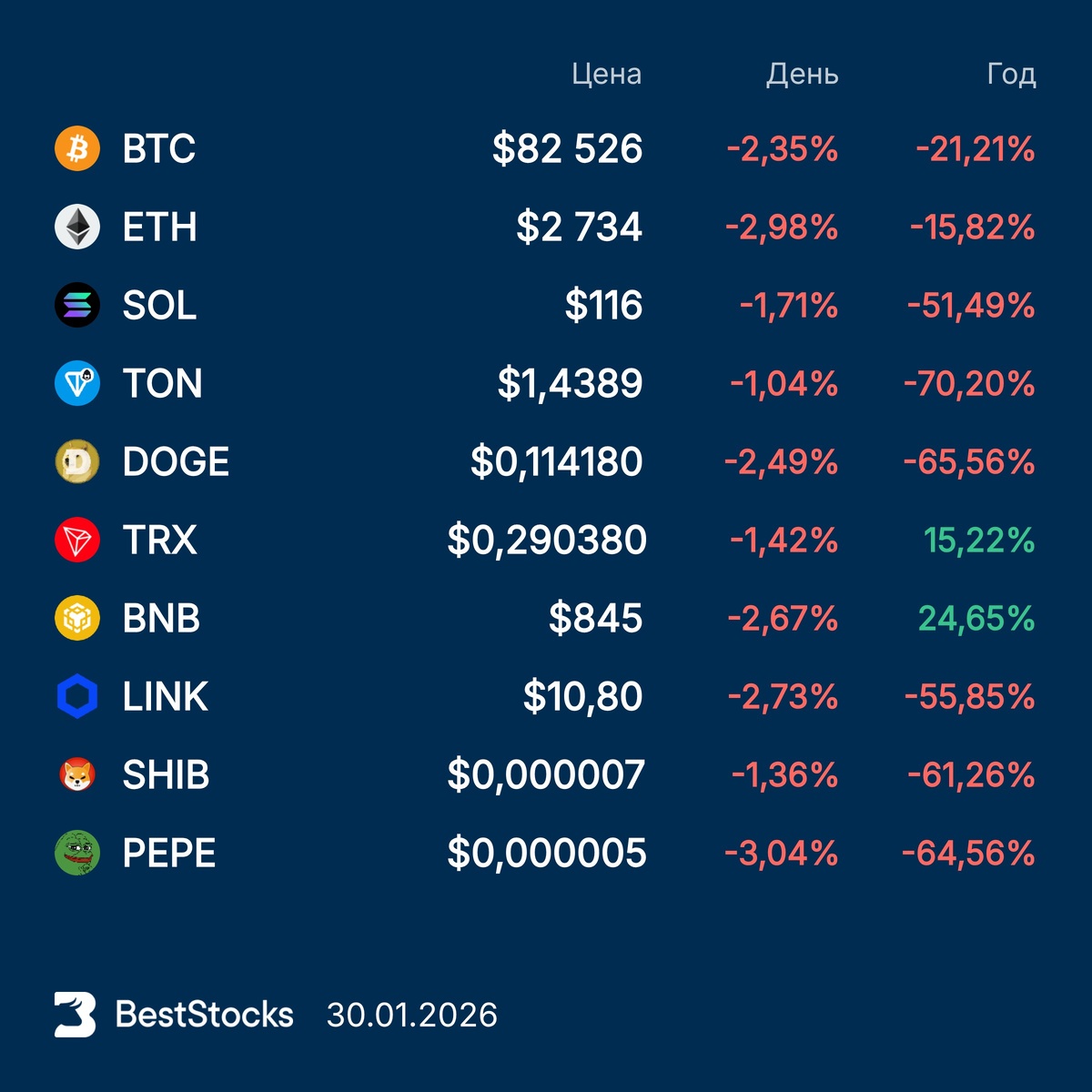 #крипта #crypto #курс #BTC #ETH #SOL #TON #DOGE #TRX #BNB #LINKUSD #PEPEUSD #SHIBUSD ••••• 📢📢📢 Подписывайтесь на бесплатные каналы BestStocks: Дивиденды России • Инвест-идеи по акциям США • Дивиденды США