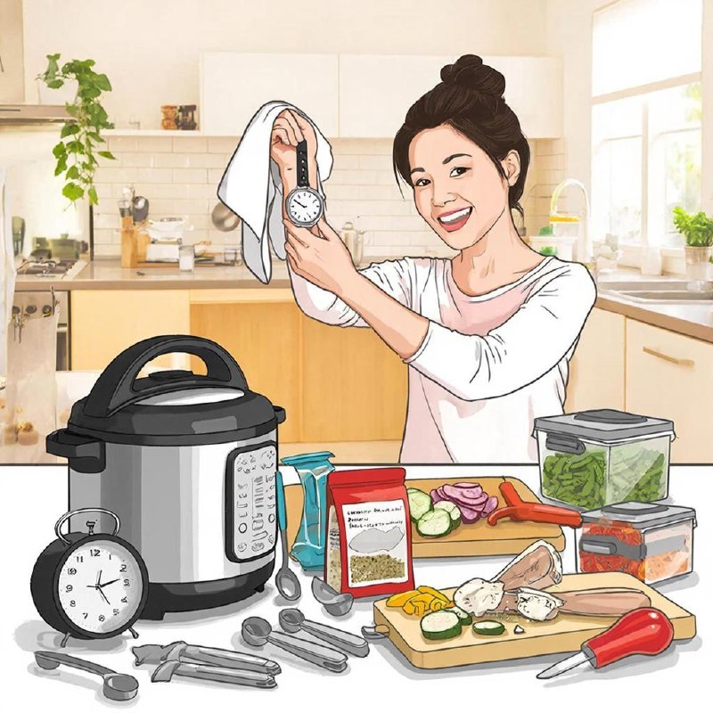 ! ⏰🍳 Нет часа на кухню, но хотите домашнюю еду? Эти приёмы сократят готовку до 15–20 мин/день 😎. Meal prep экономит 40–60% времени без срывов! 🛠 8 лайфхаков на каждый день 🚀 План на неделю 📅: В воскресенье — меню + список покупок 🛒. Готовьте похожие блюда — минус 2–3 ч беготни! Заготовки заранее 📦: 2 ч в выходной — сварите курицу🐔/рис на 3 дня, нарежьте овощи🥕 в контейнеры/морозилку🧊. Сборка — 10 мин! Готовьте сразу несколько блюд ⚡️: Курица в духовке🔥 + суп на плите🍲 + каша в мульти — всё за 30 мин! Подготовьте всё заранее 🧹: Ингредиенты на досках🪵, специи рядом — без поиска! Замораживайте порционно ❄️: Зелень🌿 в формочках для льда, фарш в пакетах. Разморозка — 5–10 мин! Используйте технику 🤖: Мультиварка "закинул и ушёл" ⏳, овощерезка режет за минуты 🥒. Универсальные заготовки 🔄: Одна курица — салат🥗/суп/запеканка. Разнообразие легко! Умные замены 🆗: Банки тунца🐟/бобов, заморозка — белок без варки! Простой план 📝: Выходной ☀️: 1,5–2 ч на заго