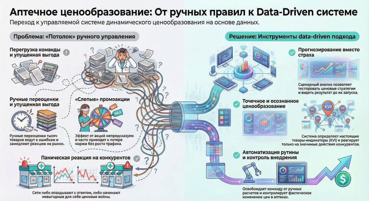 ? Честный разбор фарм-ценообразования изнутри от эксперта myRetailStrategy: почему ручные правила больше не работают и как data-driven подход меняет игру в аптечном ритейле.» Читать статью.