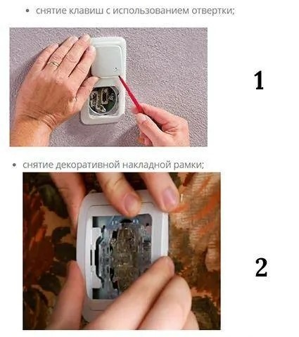 Замена выключателя — это электромонтажные работы, которые требуют соблюдения техники безопасности. 1. Обесточьте помещение. Выключите соответствующий автомат в электрическом щите или обесточьте весь дом с главного пакетного выключателя. Удостоверьтесь в отсутствии напряжения с помощью индикаторной отвёртки. 2. Снимите крышку выключателя. Аккуратно подденьте клавишу плоской отвёрткой и снимите её. У современных выключателей декоративная панель крепится на защёлках или винтах, которые спрятаны под клавишами. 3. Открутите удерживающие винты внутри выключателя. Они обычно расположены с двух противоположных сторон (слева и справа или сверху и снизу). 4. Извлеките выключатель из подрозетника. Ослабьте распорки и выверните крепёжные винты на металлической рамке, если они есть. Не отсоединяйте провода на этом этапе. 5. Сфотографируйте схему подключения старого выключателя. Это поможет правильно подключить новый. 6. Определите фазный провод. Включите электричество на короткое время, чтобы