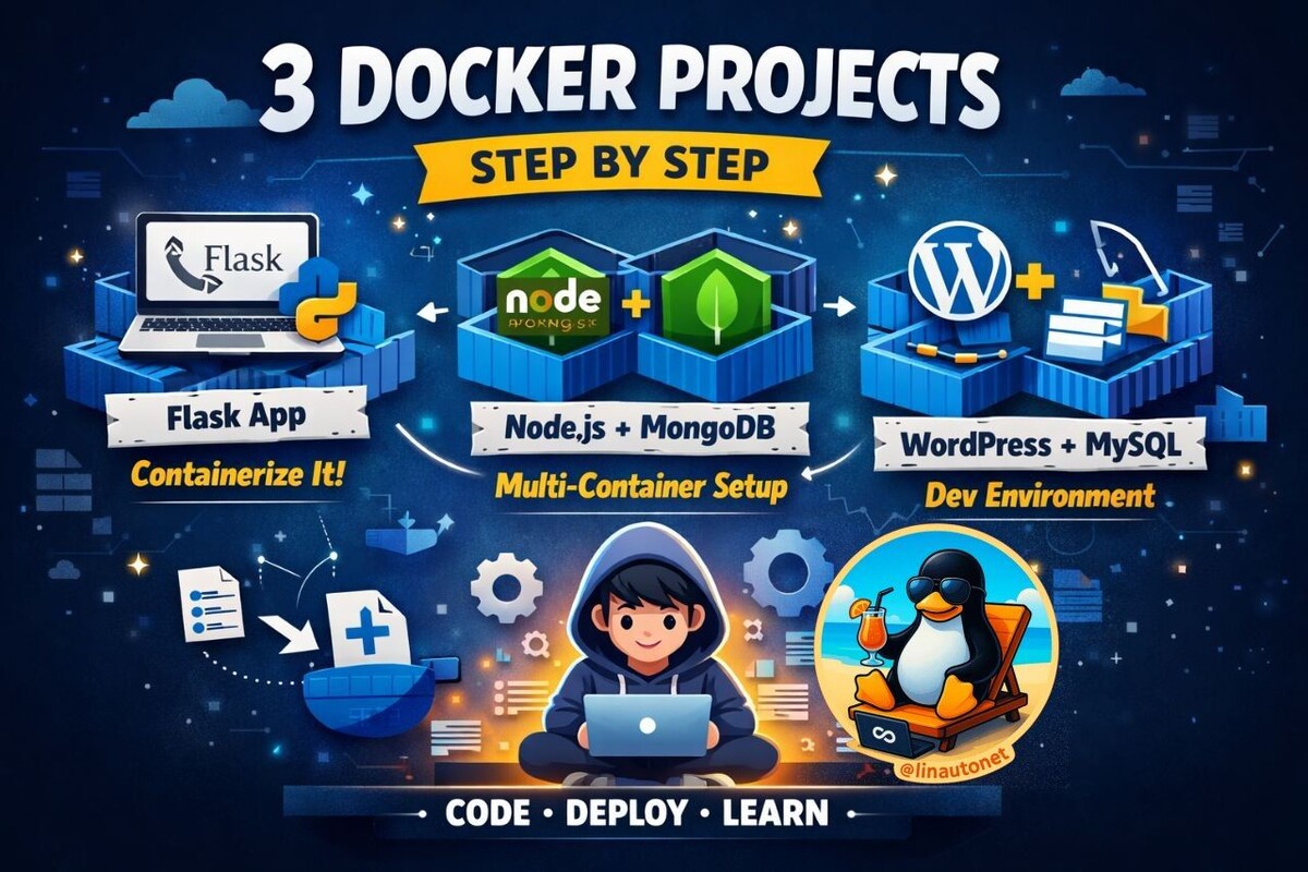 Docker — один из наиболее широко используемых инструментов контейнеризации в мире DevOps. Он необходим для эффективной разработки, развёртывания и запуска приложений. В этой статье описаны три практических проекта с использованием Docker, а также приведены полные инструкции и код для каждого из них. Эти проекты помогут вам лучше понять Docker и приложения на основе контейнеров.