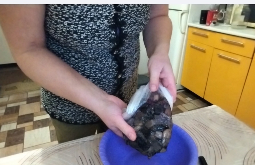 Я лениво поплелась к морозилке, в надежде, что она мне даст подсказку. Открыв один лоток, сразу его закрыла, там морковка, сливочное масло и клюква. Открыла второй лоток, и мой взгляд упал на небольшой пакет, видно было, что там что-то черное лежит. Через пару секунд я поняла, что это грибы. А почему черные? Спросите вы. Да потому что, они лесные и отварные. "Вот же наш ужин", промелькнуло у меня в голове.