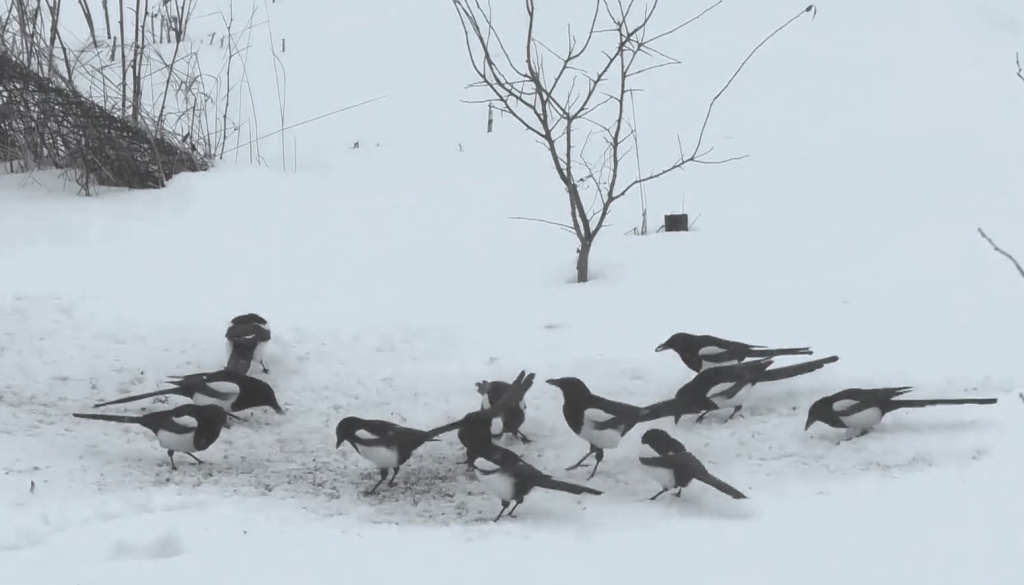 Сорока входит в пятерку главных садовых налетчиков вместе с дроздом-рябинником (настоящая птичья «саранча» ягодных садов), скворцом, вороной и воробьем.