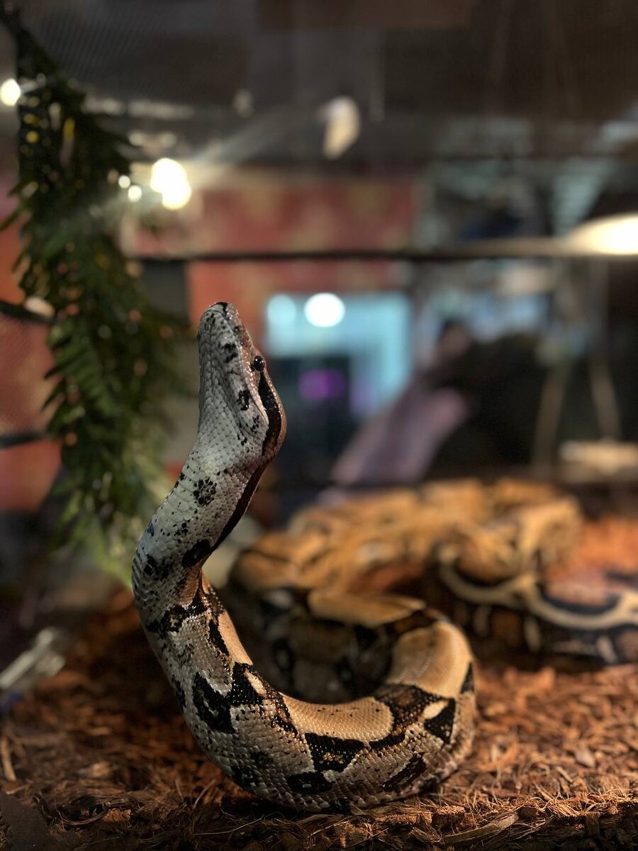 ? Это удав Маргоша- наша хранительница атмосферы и всеобщая любимица. Её гипнотизирующая красота с узором, похожим на крутые тату, никого не оставляет равнодушным. Передаём от неё всем лучи добра и вдохновения! ❤️🔥