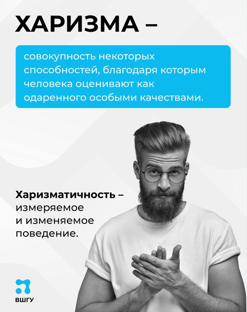 помогут современным управленцам в развитии харизмы Эксперты уверены: это качество необходимо руководителям. Харизма позволяет человеку быстрее и легче добиваться желаемого, создает вокруг него ауру успеха, которую считывают окружающие. 🙎♂️🙎♀️ Можете ли вы считать себя харизматичным человеком? Если да, то карточки подскажут, за счет чего. Если нет, то попробуйте себя оценить и при помощи экспертов Центра «Цифровая школа госуправления» ВШГУ Президентской академии разобраться, что может стать опорой вашей харизмы. 📌 Образовательная платформа Цифровой университет муниципалитетов создана ВШГУ Президентской академии по поручению Президента России Владимира Путина при поддержке Администрации Президента РФ и Всероссийской ассоциации развития местного самоуправления. 🔹 МУНИЦИПАЛИТЕТЫ.РФ. Подписаться