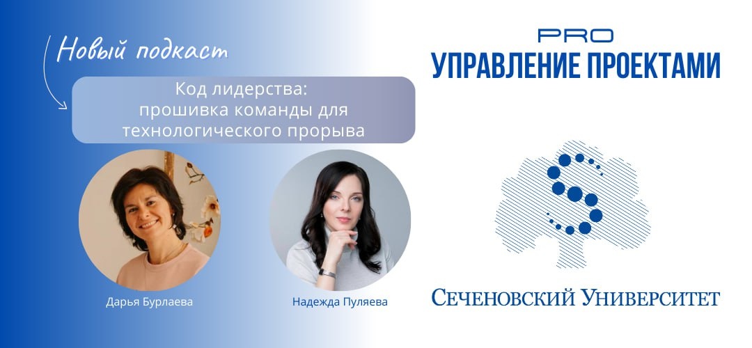? ❗️ Делимся опытом Сеченовского университета в новом выпуске подкаста «Проектной ПРАКТИКИ»: Код лидерства: прошивка команды для технологического прорыва. 👉 Слушать подкаст. 🎙 Гость выпуска - Надежда Пуляева, начальник отдела управления персоналом и внутренних коммуникаций Сеченовского университета, сертифицированный руководитель проектов с 15+ лет опыта в HR. В выпуске: 🔹Что на самом деле значит «прошивка команды» и почему без неё не работают даже передовые технологии; 🔹 Как создать культуру доверия и безопасную среду, особенно в R&D; 🔹 Почему междисциплинарность - это не модное слово, а условие выживания сложных проектов; 🔹 Как выглядит лидерство через коучинг, а не контроль; 🔹 И почему цель - это единственный настоящий стержень, который держит команду вместе. Этот выпуск - про людей, которые двигают большие изменения. И про команды, которые способны на большее, чем кажется. «Делайте то, что любите, и любите то, что делаете — тогда всё получится, и даже больше», — говор