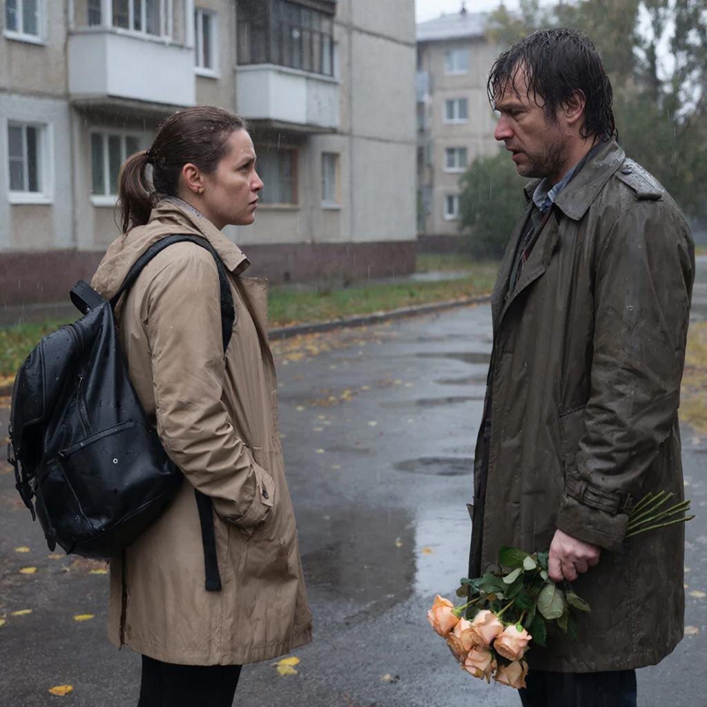 Дождь усилился. Он всё ещё стоял там, под окнами. С цветами, которые уже никто не ждал.