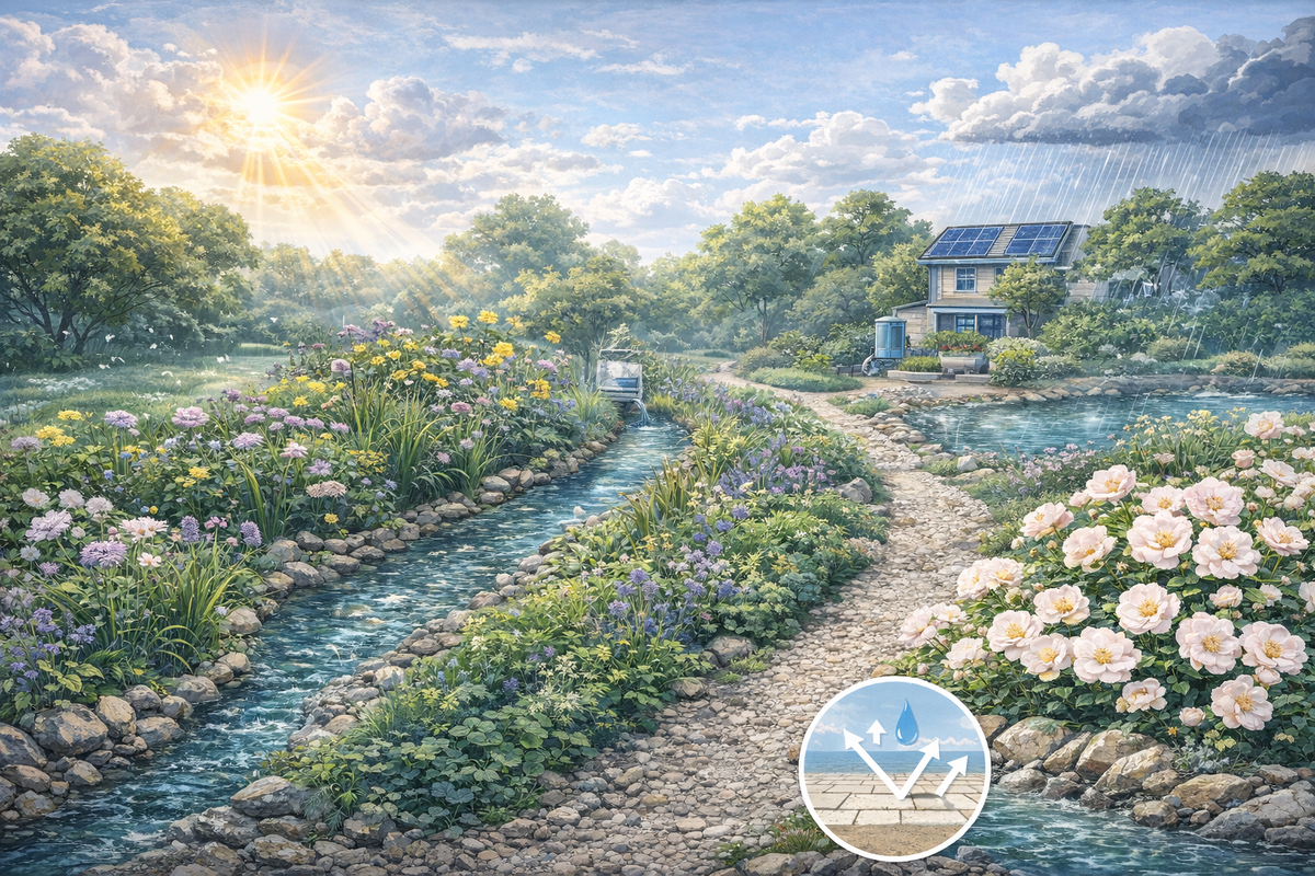 Иллюзия стабильного климата окончательно развеяна. Дизайн 2026-2027 года — это проектирование с оглядкой на засухи, ливни и волны жары. Акцент смещается с пассивного «озеленения» к активной климатической адаптации.