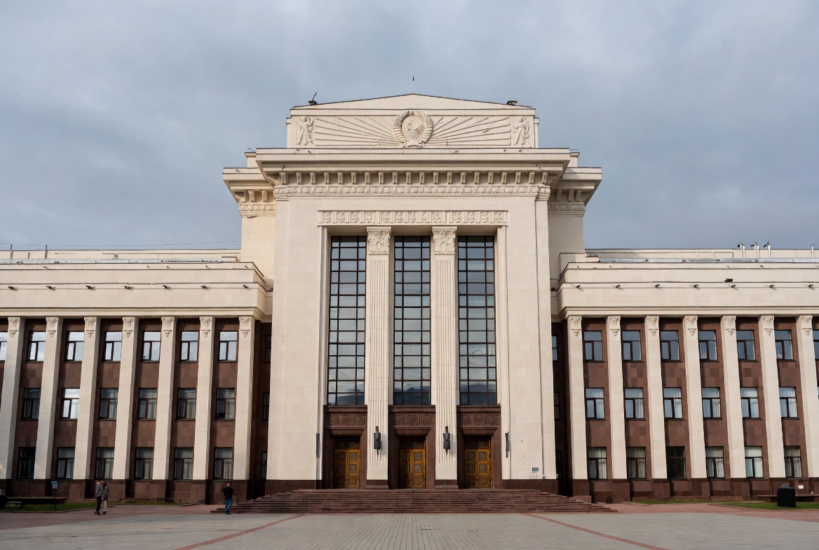 - в 1930–1950‑е — монументальные постройки в стиле сталинского ампира с колоннами, лепниной, барельефами;