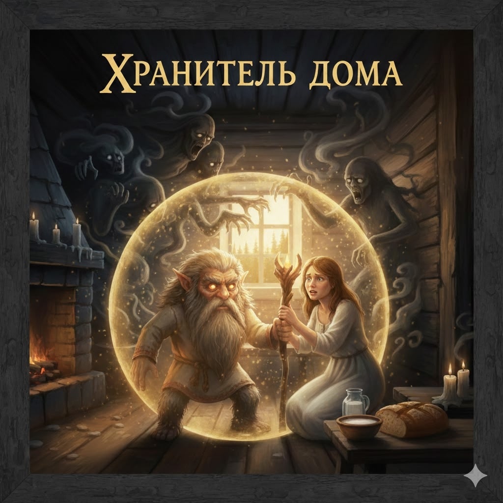 Он крепко сжал в руке свой посох, сделанный из старого дуба, и произнёс древние слова, которые знал только он. От его голоса по дому разошлась волна тёплого, защитного света, отталкивая тени назад. Духи завыли от ярости, но не смогли преодолеть барьер, созданный Домовым.