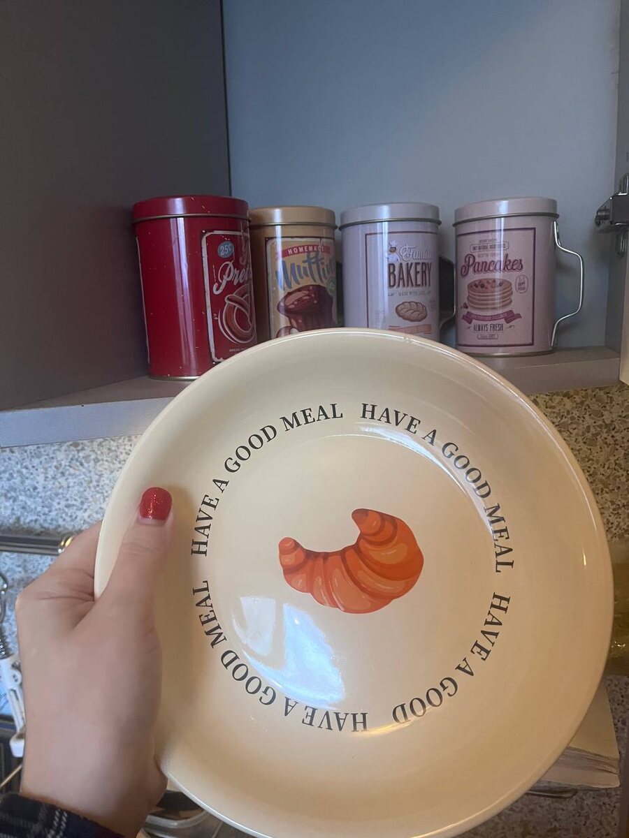 🥰 Посуда как в Pinterest за 3 копейки! Я, как человек, который из Европы привозит не шмотки, а утварь для ванны и кухни, одобряет жёстко! В приложении уже не заказать, надо искать очно в магазинах. Коллекция большая, но вот эта тарелка и баночки для хранения кондитерской мелочи довели меня до кассы!