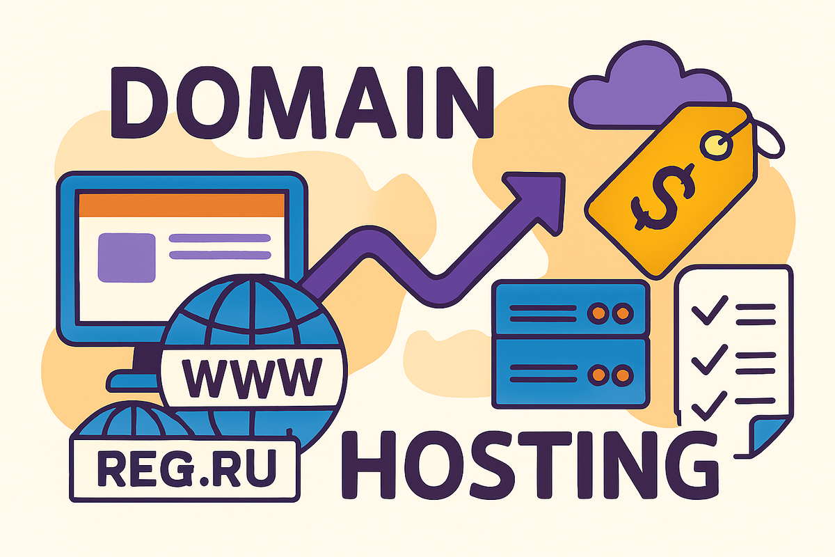 Мы переходим к первому практическому шагу — настройке домена и хостинга. Всё обучение будет проходить на примере хостинга Reg.ru. . Это надёжный российский провайдер, с которым удобно работать новичкам. У него понятный интерфейс, хорошая поддержка и всё, что нужно для запуска сайта. Но если вы уже используете другой хостинг — ничего страшного, принципы те же, просто интерфейс будет отличаться. Давайте сначала разберёмся, что такое домен и хостинг. Домен — это адрес вашего сайта. Например, www.site.ru — это домен. Люди вводят его в браузере, чтобы попасть на ваш сайт. Хостинг — это место, где хранятся файлы сайта, база данных, изображения, настройки. Без хостинга сайт не работает — это как квартира без адреса: вроде бы есть, но никто не знает, где она. Теперь приступаем к работе. Первым делом нам нужно купить домен и хостинг. Мы будем использовать Reg.ru. Почему именно его? Потому что у него очень удобная панель управления, всё работает быстро, поддержка отвечает оперативно, можно устан