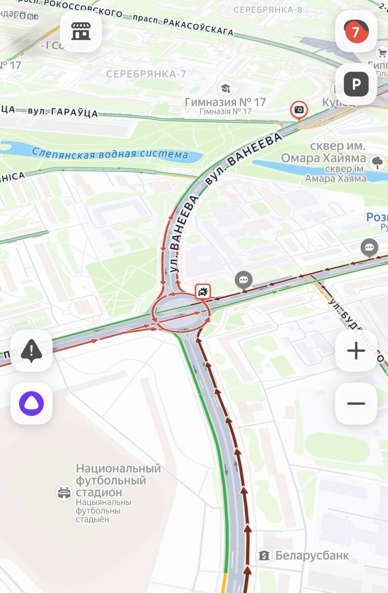 🚧 Большой затор на перекрестке улицы Ванеева и Партизанского проспекта