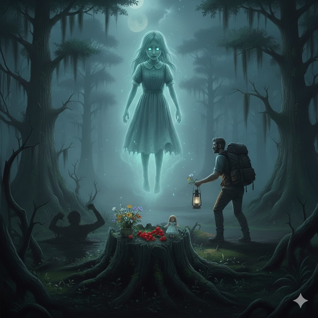 Люди стали приходить к краю болота, оставляя на старых пнях небольшие дары — полевые цветы, ягоды, иногда даже маленькие игрушки. Это было их способом поблагодарить невинный дух, который, даже после смерти, продолжал нести добро и спасение в этом мрачном и опасном месте.