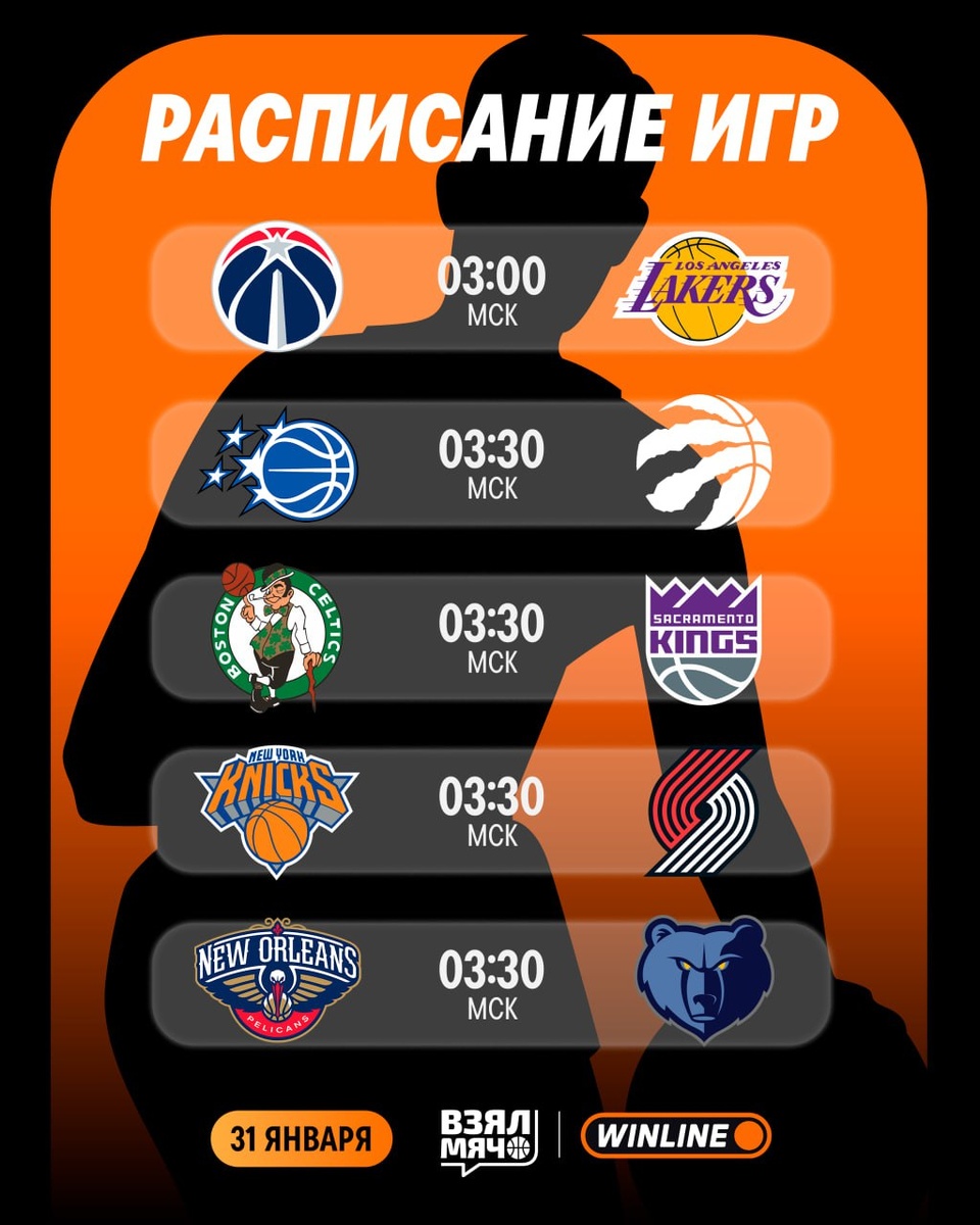 ! Сегодня «Вашингтон» попробует продолжить победную серию, «Бостон» постарается вернуться на вторую строчку Востока, а «Детройт» — реабилитироваться после поражения от «Финикса». Трансляции абсолютно всех игр смотрите в нашей группе ВК 👈🏼 03:00 | Вашингтон — Лейкерс 🎙 Андрей Протасов 03:30 | Орландо — Торонто 🎙 Дмитрий Хамидулин 03:30 | Бостон — Сакраменто 🎙 Артём Тихонов 03:30 | Нью-Йорк — Портленд 🎙 Андрей Панкрашев 03:30 | Новый Орлеан — Мемфис 🎙 Виталий Чубаев 05:00 | Финикс — Кливленд 🎙 Александр Зотеев 05:00 | Денвер — Клипперс 🎙 Матвей Юдкин 05:30 | Юта — Бруклин 🎙 Андрей Протасов 06:00 | Голден Стэйт — Детройт 🎙 Дмитрий Хамидулин Какие команды победят сегодня? 🏀 ПОДПИШИСЬ — ЗДЕСЬ ЖИВЁТ БАСКЕТБОЛ!