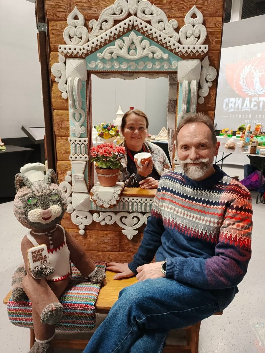 Эльмира приехала на фестиваль из Карелии не одна. Рядом был её муж - самая надёжная поддержка. Он помог сделать специальный кейс для безопасной перевозки конкурсной работы, был рядом на Пряничном балу и во всех поездках. Его присутствие - это не просто «сопровождение». Это молчаливое и самое весомое «я в тебя верю, и я с тобой».