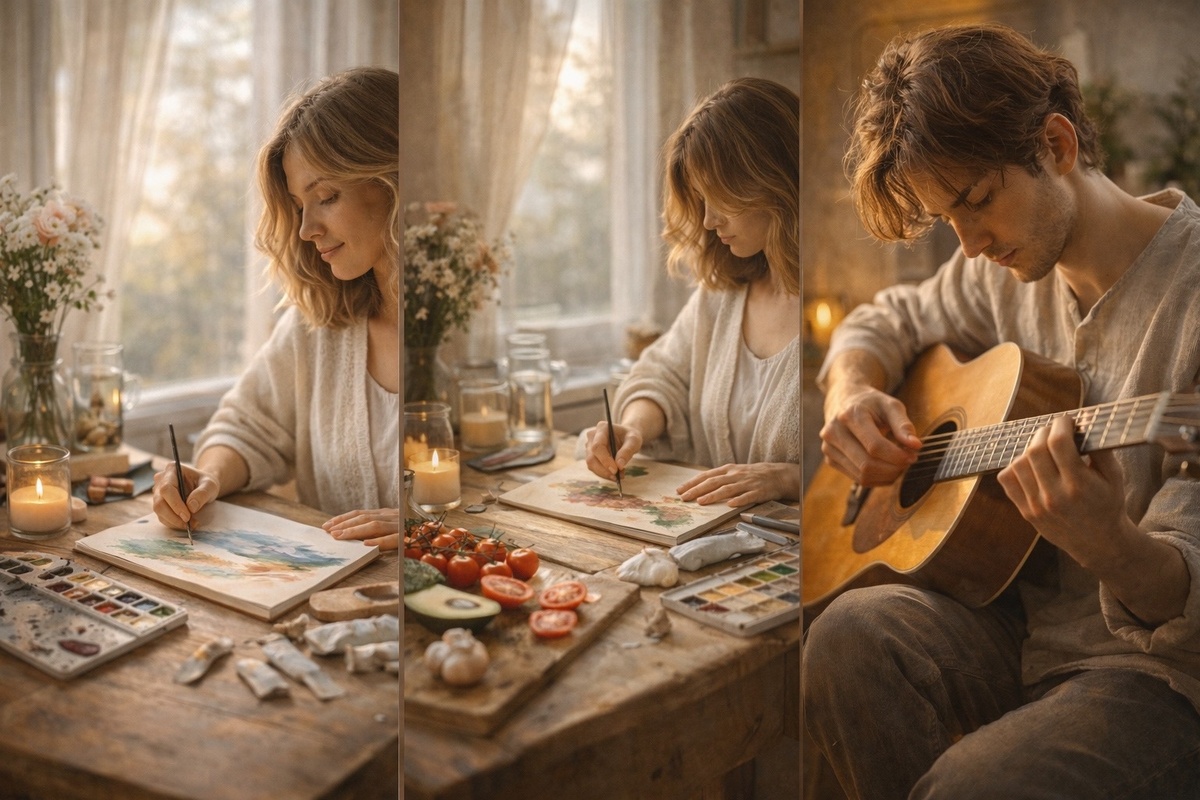 Не все виды творчества воздействуют на нас одинаково. Есть занятия, которые особенно бережно «достают» человека из тревоги и возвращают ему ощущение опоры. Рисование, готовка и музыка — именно такие. И дело не в случайности.