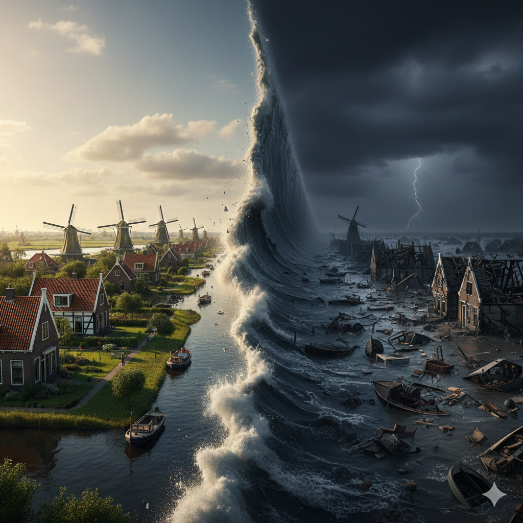 - Последствия удара стихии: В ту ночь погибло 1 836 человек, около 72 000 эвакуированно. 3500 домов и ферм уничтожено, 47 300 получили повреждения, из них 10000 пришлось снести. Солёное море поглотило 1365 квадратных километров земли и сделало их непригодными для сельского хозяйства, более 30000 животных утонуло. Общий ущерб составил 1 миллиард голандских гульденов, астрономическое сумма для поствоенной страны.
