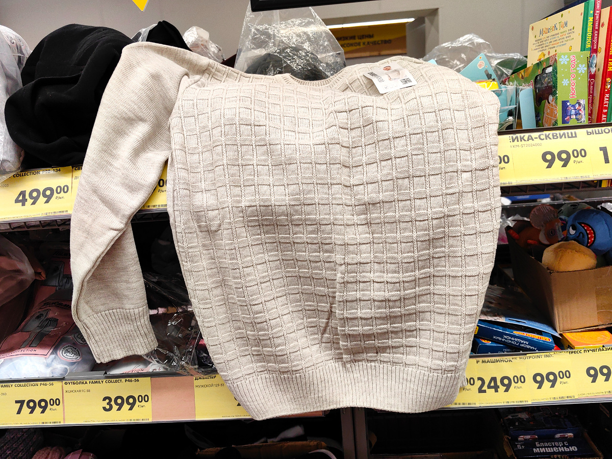 Вот еще свитер, тоже для мужчин. Темнее, чем на этикетке, и вырез отличается. Точно не углом, у реального вырез закругленный.
